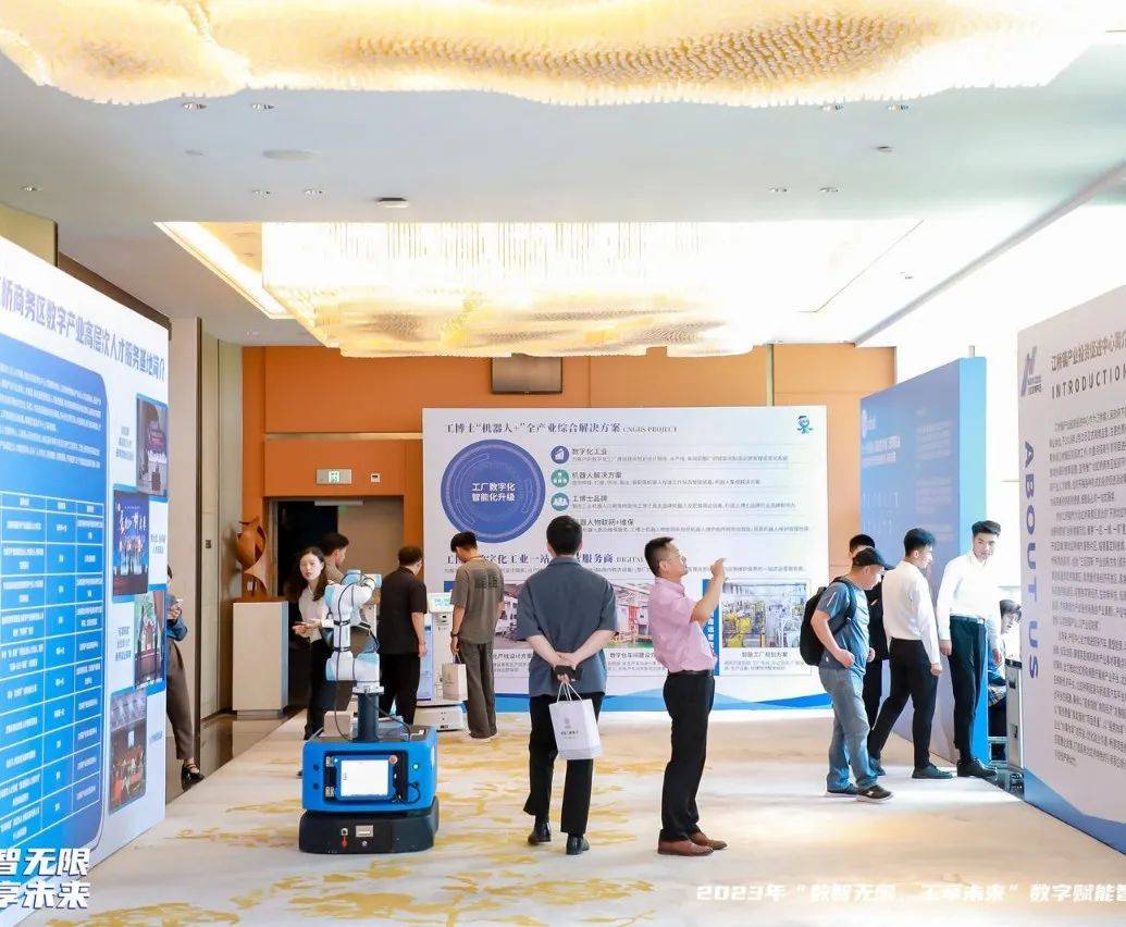 2023年6月8日下午,“數(shù)智無限,工享未來”數(shù)字賦能智慧工廠創(chuàng)新論壇在上海北虹橋綠地鉑驪酒店隆重舉行。本次論壇由上海虹橋國際中央商務(wù)區(qū)管理委員會、上海市嘉定區(qū)人民政府指導(dǎo),上海市北虹橋商務(wù)區(qū)管理委員會辦公室、上海市嘉定區(qū)江橋鎮(zhèn)人民政府、上海交通大學(xué)電子信息與電氣工程學(xué)院、上海市人工智能技術(shù)協(xié)會等主辦。工博士作為承辦方之一,向與會代表們展示了機(jī)器人集成技術(shù)及智能數(shù)字化工廠解決方案,引發(fā)了與會代表們對未來工廠發(fā)展方向的深入探討。