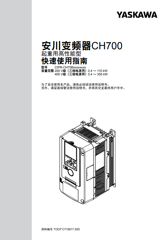 安川變頻器CH700起重用高性能型快速使用指南