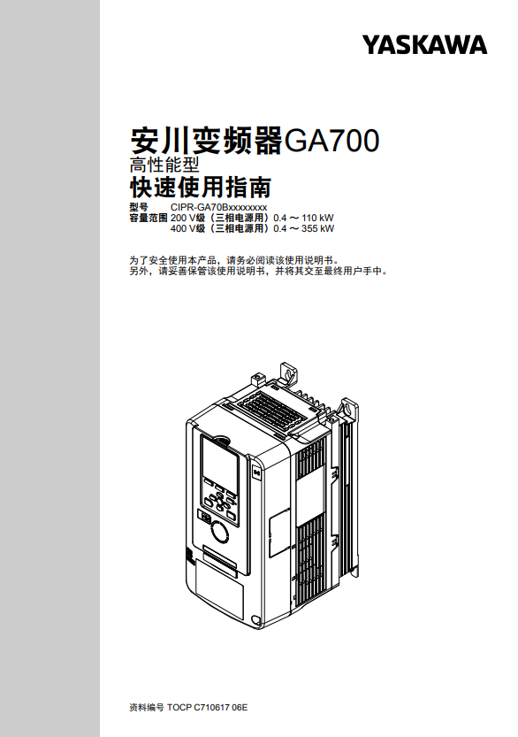 安川變頻器GA700高性能快速使用指南