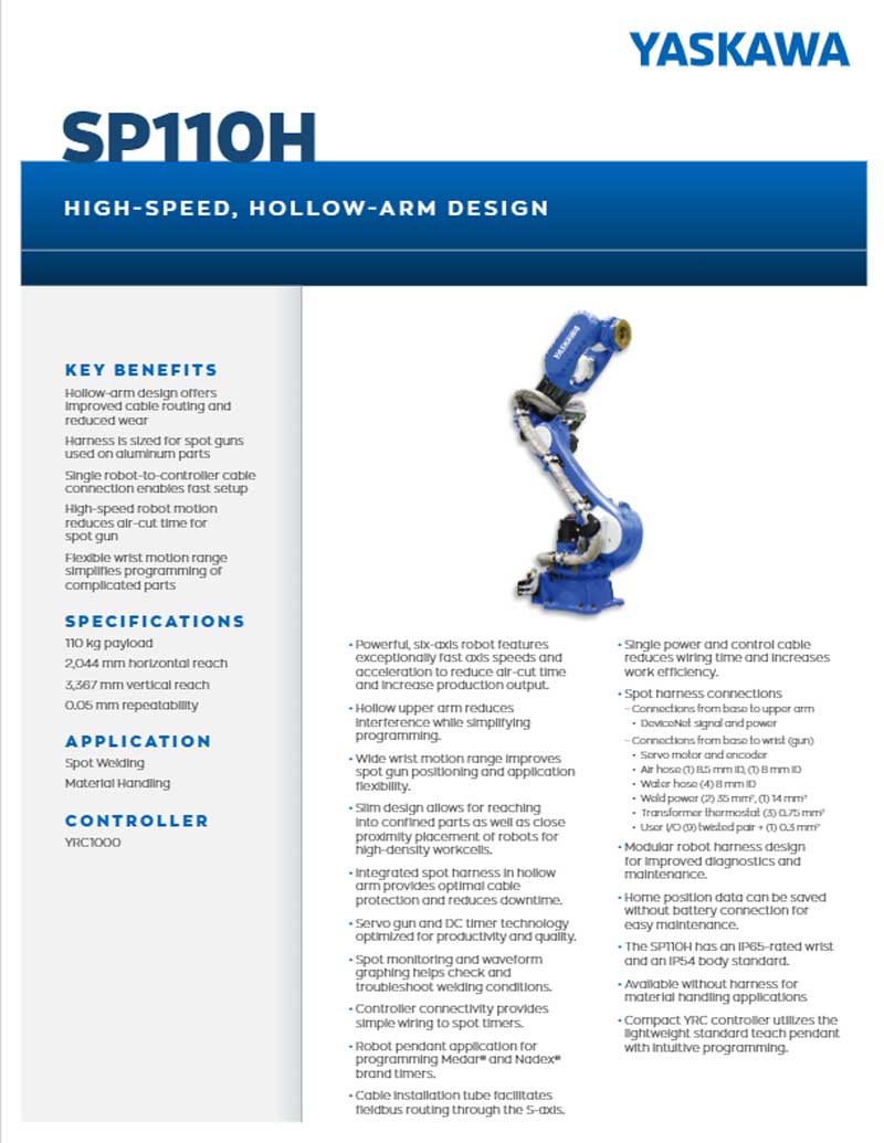 -采用中空手臂構(gòu)造,可將點(diǎn)焊的電纜類道內(nèi)置其中。
