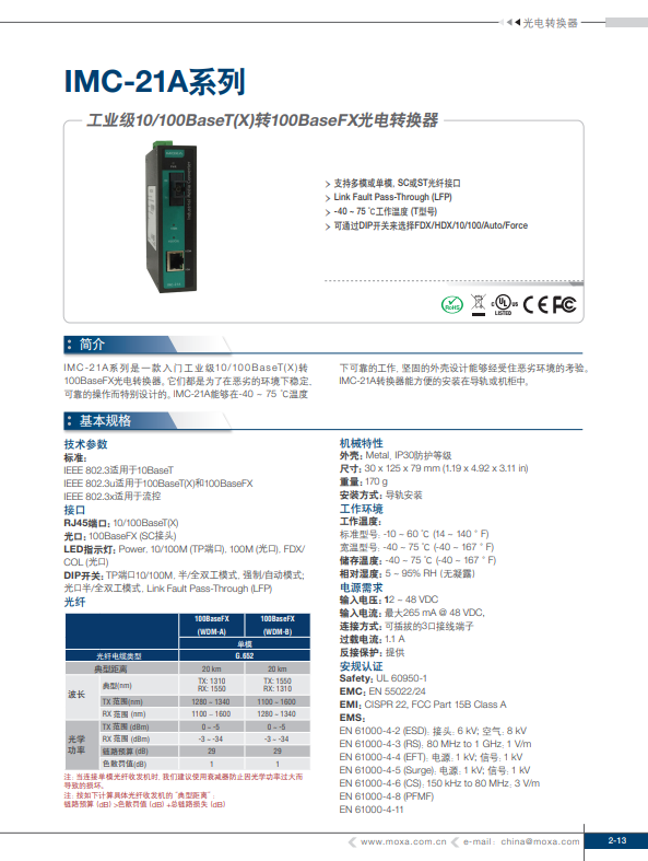 摩莎IMC-21A工業(yè)級光電轉(zhuǎn)換器產(chǎn)品手冊