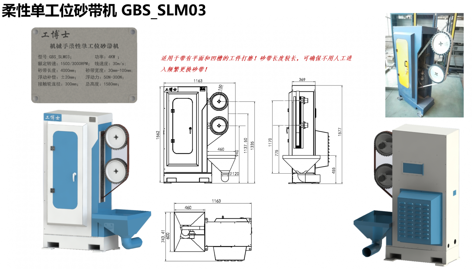 商品列表 ![]() 工博士 機(jī)械手柔性單工位砂帶機(jī) GBS_SLM03品牌 :工博士 系列 : 型號(hào) :GBS_SLM03