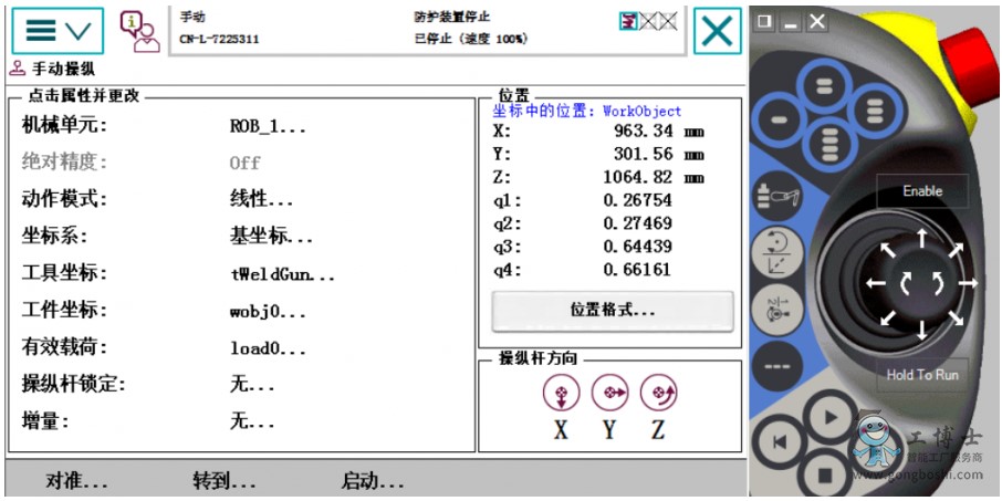 7)可以進入示教器-控制面板-配置-主題motion,single下看到變位機的base相對于world坐標系的關(guān)系。