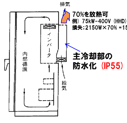 為此,我公司針對主冷卻單元采用了防水、防塵標準“IP55”※。由此,即使在惡劣的環(huán)境條件下,也同樣可以采用盤體外冷卻方式來進行排熱。從而有助于進一步實現(xiàn)設備的小型化和節(jié)能化。