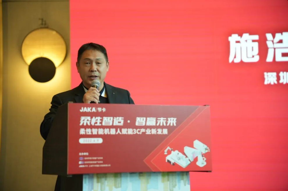 深圳市電子裝備產(chǎn)業(yè)協(xié)會(huì)施浩會(huì)長和節(jié)卡機(jī)器人李明洋董事長致辭,表示希望3C行業(yè)上下游產(chǎn)業(yè)鏈企業(yè)能深度結(jié)合、協(xié)同發(fā)展、不斷創(chuàng)新,破解發(fā)展瓶頸,共同推進(jìn)產(chǎn)業(yè)高質(zhì)量發(fā)展。