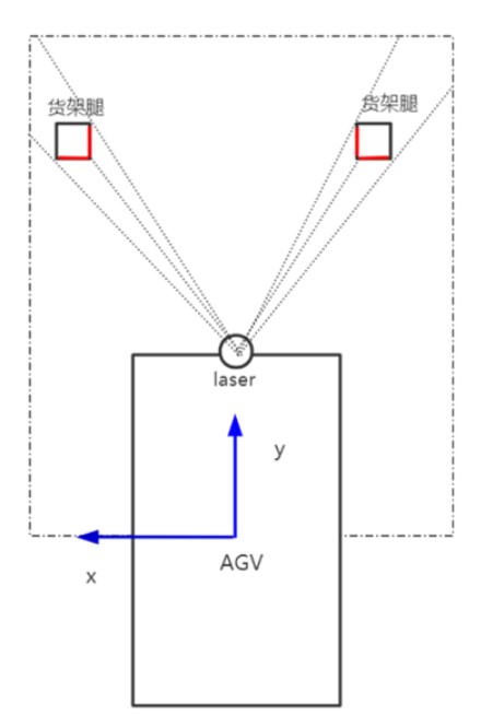 使用激光點(diǎn)云形狀識(shí)別功能,需要將參數(shù)配置 method_type 配置為 by_legShape,在激光雷達(dá)的識(shí)別區(qū)域要避免遮擋住貨架腿;