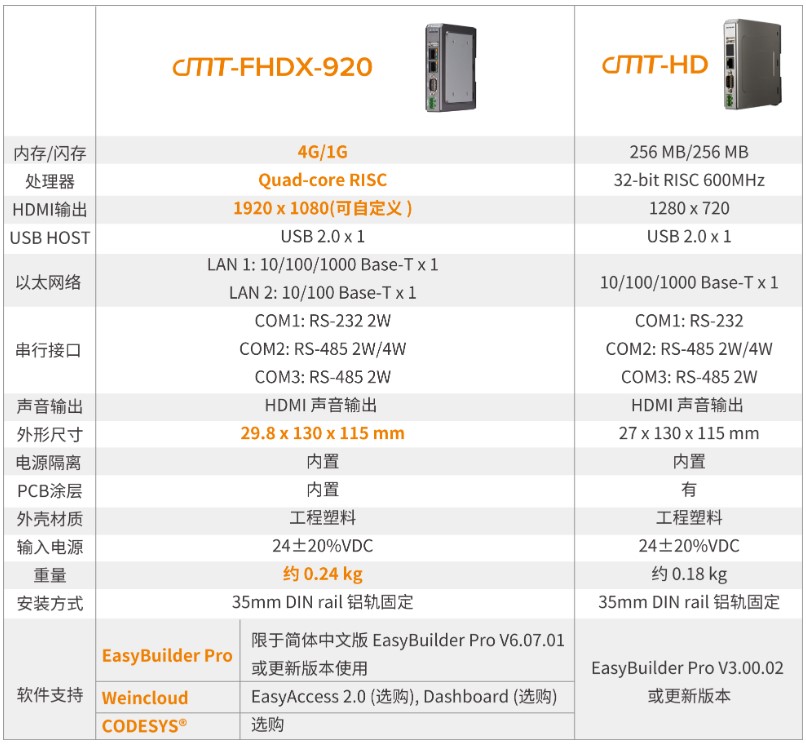 目前,威綸通可以實現(xiàn)大屏解決方案的產品型號如下:cMT-FHDX-920*、cMT-HD,產品規(guī)格參照下表: