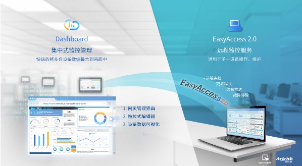 特別是備受矚目的WebView網(wǎng)頁監(jiān)控方案、Javascript支持、Weincloud遠程監(jiān)控(EasyAccess 2.0 及 Dashboard儀表板),均可在cMT X進階型HMI中找到。