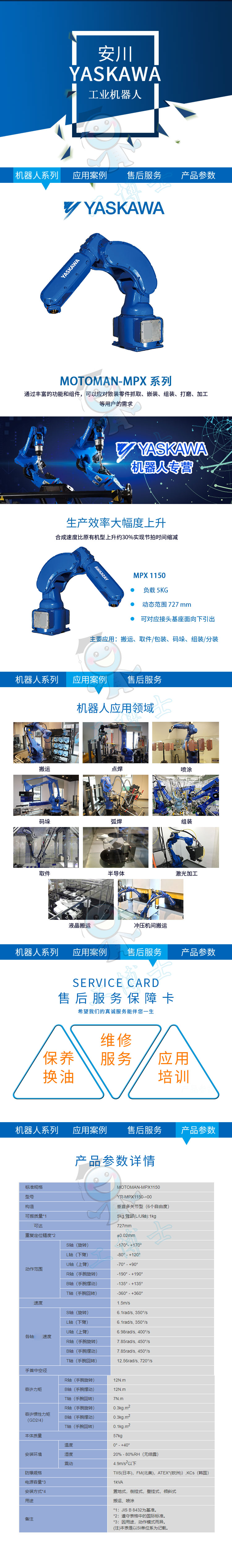 安川 MPX1150 適合小型工件噴涂的6軸垂直多關(guān)節(jié)機器人
