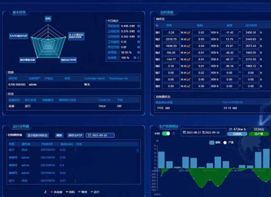 工博士機(jī)器人物聯(lián)網(wǎng)解決方案提供對(duì)整個(gè)工廠、車(chē)間所有機(jī)器人的整體概況總覽與管理。在現(xiàn)在流行、友好、美觀的WEB界面上可以快速查看所有機(jī)器人設(shè)備的生產(chǎn)效率、故障率、資產(chǎn)情況,使管理者對(duì)整個(gè)生產(chǎn)情況的一目了然。